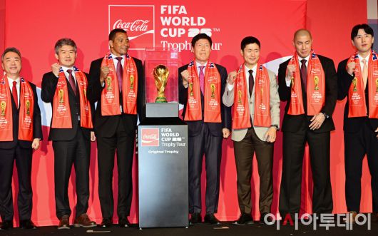 아시아투데이 박상선 기자 = 코카-콜라는 16일 서울 용산구 CGV용산아이파크몰에서 2026 북중미 FIFA 월드컵을 앞두고 전 세계를 순회 중인 오리지널 FIFA 월드컵 트로피를 국내 축구 팬들에게 선보이고, 대한민국 축구 국가대표팀의 선전을 기원하는 기자간담회를 개최했다.