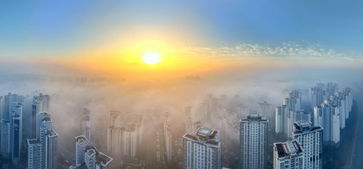 짙은 안개와 미세먼지로 뒤덮힌 광주도심. 뒤로 무등산이 희미하게 보인다./김영근 기자 |