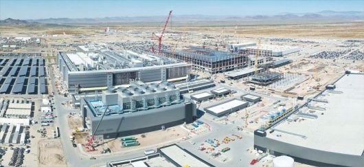 TSMC대만 파운드리(반도체 위탁 생산) 업체 TSMC가 미국 애리조나주 피닉스 인근에 짓고 있는 반도체 공장(팹) 건설 현장의 모습. 공장 본건물과 함께 냉각·전력 등 기반 설비 공사가 진행 중이고, 부지 왼쪽엔 태양광 패널도 보인다. |