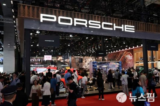 지난해 4월 23일 중국 상하이에서 열린 상하이 오토쇼 미디어 데이에서 방문자들이 포르쉐 부스를 둘러보고 있다. [사진=로이터 뉴스핌] |