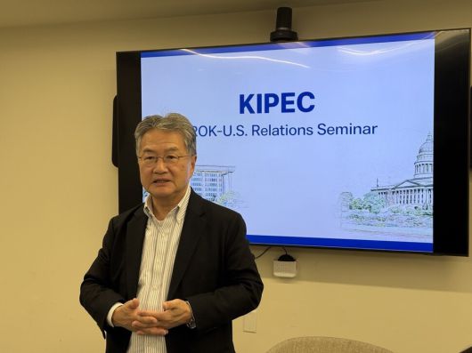 도널드 트럼프 2기 행정부 첫 10개월간 주한 미국대사대리로 활동한 조셉 윤이 16일(현지시각) 트럼프 2기 행정부 출범 1년을 맞아 한미의회교류센터(KIPEC)가 주최한 대담에서 발언하고 있다. 워싱턴/김원철 특파원 |