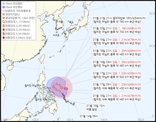 또 2026년 1호 태풍 노카엔이 필리핀 동쪽바다에서 발생해 북서방향으로 이동중이다.