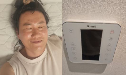 공개된 사진에는 온수 매트 위에 누운 채 편안한 차림으로 눈을 지그시 감고 미소를 짓고 있는 임우일의 모습이 담겼다. 특히 보일러를 켜지 않은 사진을 함께 공개하며 눈길을 끌었다.