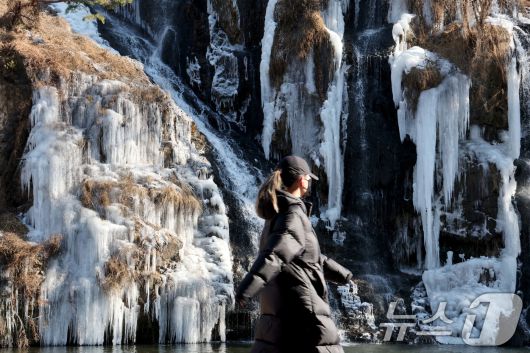 전국 곳곳에 한파특보가 발효 중인 11일 오후 서울 서대문구 홍제천 인공폭포가 얼어붙어 있다. 2026.1.11/뉴스1 ⓒ News1 이광호 기자 |