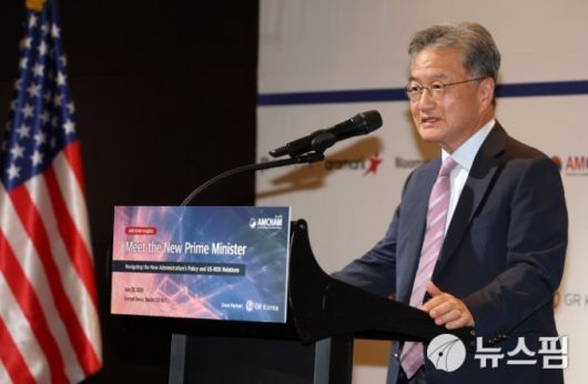 [서울=뉴스핌] 청사사진기자단 =조셉 윤 주한 미국대사 대리가 지난 7월 22일 서울 여의도 콘래드서울 호텔에서 열린 주한미국상공회의소(AMCHAM KOREA) 세미나에서 축사를 하고 있다. 2025.07.22 photo@newspim.com |