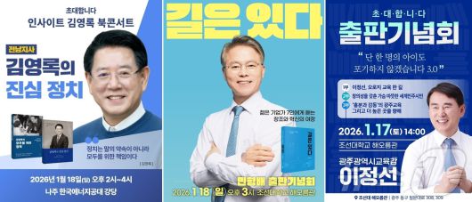 (광주=뉴스1) 서충섭 기자 = 지방선거를 5개월여를 앞두고 광주·전남 출마예정자들의 출판기념회가 이번 주말 집중 진행된다. 통합 특별시장과 특별시교육감 주요 후보들은 대대적인 출판기념회를 통해 기선잡기에 나설 것으로 보인다.