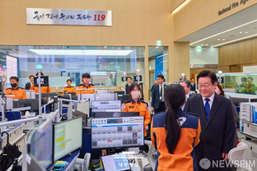 [서울=뉴스핌] 이재명 대통령이 16일 세종 나성동 소방청 119 종합상황실을 방문해 근무자들을 격려하고 있다. [사진=대통령실] 2025.12.16 photo@newspim.com3 |