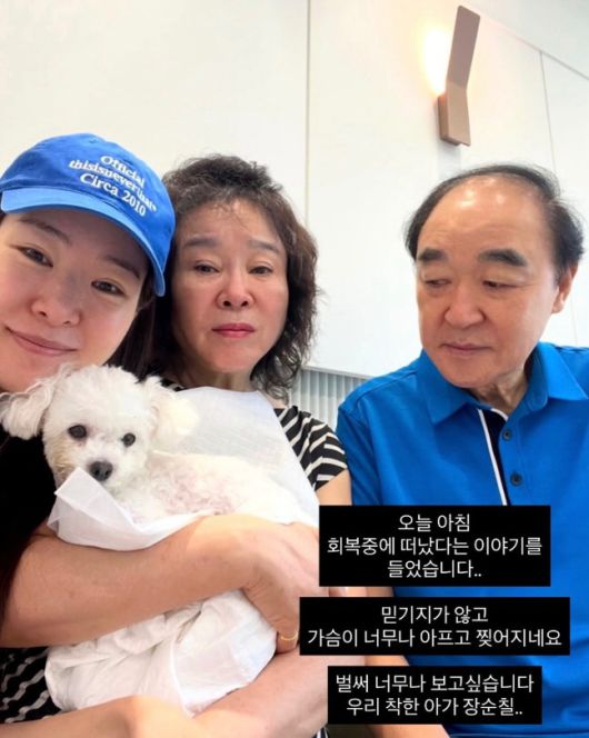 이어 그는 "함께한 추억이 너무 많고 곳곳에 순칠이 냄새가 그대로 남아있는데 순칠이만 없다"며 "가슴이 찢어지고 숨도 안 쉬어지고 어떻게 표현이 안 될 만큼 슬프다"며 반려견을 떠나보낸 슬픔을 전했다.