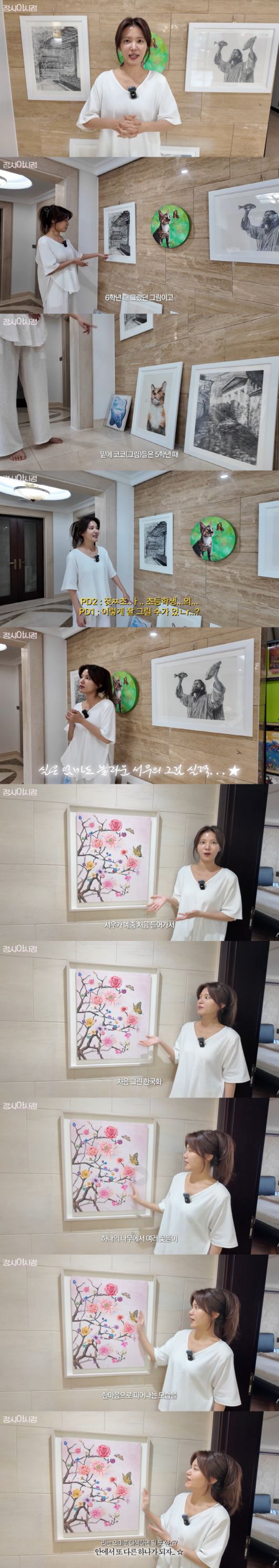 이날 집에서 촬영을 진행한 정시아는 벽에 걸린 작품에 대해 "서우가 5, 6학년 때 그렸던 그림이다"라고 소개했다.