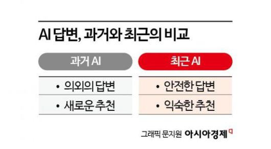 최근 생성형 인공지능(AI) 이용자들 사이에서는 "요즘 AI가 예전만 못하다"는 불만이 심심치 않게 나온다. 답변이 틀린 것은 아니지만, 예상을 뛰어넘는 통찰이나 번뜩이는 아이디어는 줄어들고 지나치게 '안전하고 뻔한' 답만 내놓는다는 것이다.