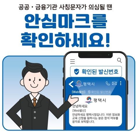 이에 따라 기존 문자메시지는 발신 번호만 표시돼 스미싱과 구분이 어려웠으나, 새 서비스는 평택시 로고, 기관 명칭, 인증 안심 마크가 함께 표시된다.
