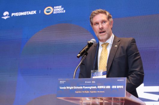 애니 라이트 스쿨, 평택 학생 대상 장학 프로그램을 발표하고 있는 제이크 과드놀라(Jake Guadnola) 총교장[사진=평택시] |