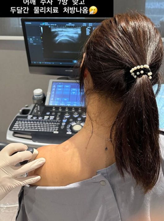 이어 상태가 좋지 않은 팔의 엑스레이 사진을 공개하며 "팔을 못 들다 보니 왼쪽 어깨가 더 솟구쳤다. 저 검은 띠가 어깨 연골 사이에 생긴 염증"이라며 "의사 선생님이 한 달 동안 어떻게 참았냐며 놀라셨다"고 덧붙였다.