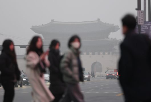 미세먼지와 초미세먼지 농도가 '나쁨' 수준을 보인 16일 서울 광화문광장 인근이 뿌옇게 보이고 있다./연합뉴스 |