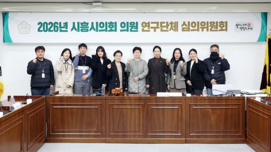 (사진/시흥시의회) 시흥시의회(의장 오인열)가 1월 16일 의회운영위원회 회의장에서 2026년 의원 연구단체 심의위원회를 개최하고 기념촬영을 하고 있다. |