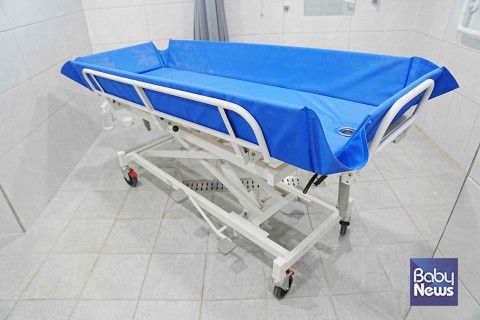 SRC재활병원이 전 병동에 도입한 ‘이동식 샤워베드’. 높낮이 및 기울기 조절 기능으로 거동이 불편한 환자의 안전한 세정을 돕고 낙상 사고를 예방한다. ⓒSRC재활병원 |