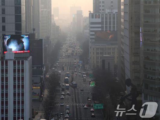 (서울=뉴스1) 황기선 기자 = 수도권 지역의 초미세먼지 노동가 '나쁨' 수준을 보인 17일 오전 서울 도심이 뿌옇게 보이고 있다. 2026.1.17/뉴스1