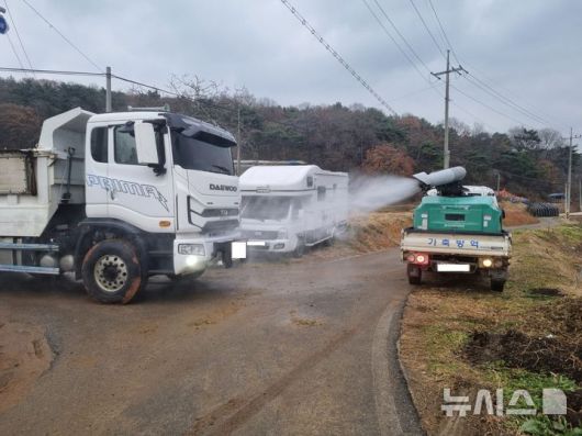 [당진=뉴시스] 김덕진 기자=충남 당진시청 방역차량이 지난해 11월25일 아프리카돼지열병이 발견된 송산면 무수리 돼지농장 주변 방역대 안에서 긴급 방역 소독을 진행하고 있다. (사진=당진시 제공) 2025.11.25. photo@newsis.com |