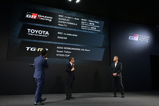 ‘TG-RR(토요타 가주 루키 레이싱)’은 당초 아키오 회장이 개인 소유의 팀이었지만 이제는 ‘토요타’ 모터스포츠의 중요한 축으로 자리 잡는다. 슈퍼 타이큐와 뉘르부르크링 내구 레이스를 중심으로 활동한다. 이 조직은 성적보다 개발 과정과 인력 육성에 초점을 맞춰 ‘각 분야의 전문성’ 및 상호 경쟁 및 경쟁 구도에 힘을 더할 예정이다.