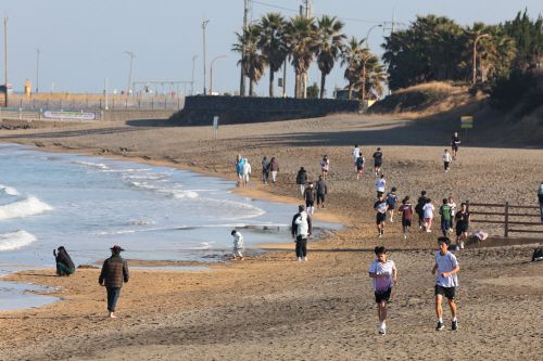 맑은 날씨를 보인 16일 오전 제주시 이호해수욕장에서 전지훈련을 위해 제주를 찾은 선수들이 달리기를 하고 있다./연합뉴스 |