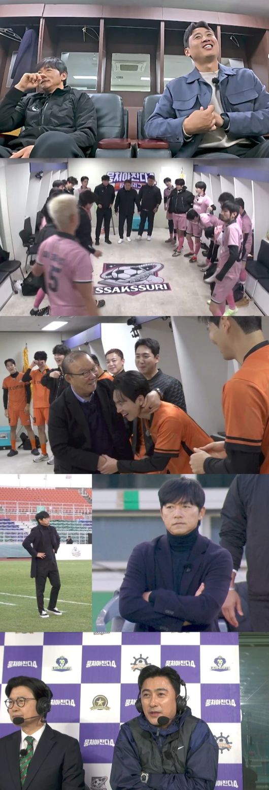 여기에 과거 'FC파파클로스'를 이끌었던 박항서 감독이 'FC캡틴'의 지원사격을 위해 깜짝 방문해 눈길을 끌었다. 박항서 감독은 라커룸을 찾아 선수들에게 "싹쓰리UDT는 우리한테 한 번도 못 이겼다. 우리 밥이었다"라는 거침없는 입담으로 기를 불어넣으며 '승리 요정'의 면모를 과시했다.
