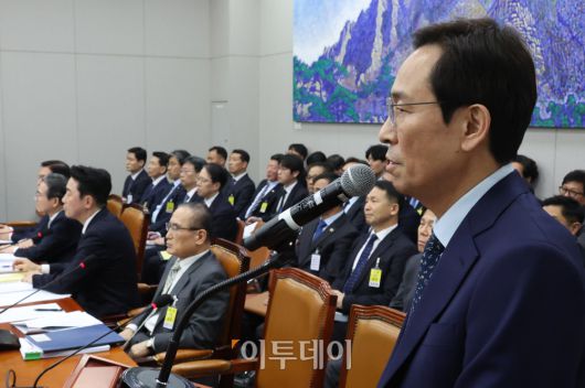 우상호 대통령비서실 정무수석이 6일 서울 여의도 국회 운영위원회에서 열린 국정감사에서 의원 질의에 답하고 있다. 고이란 기자 photoeran@ |