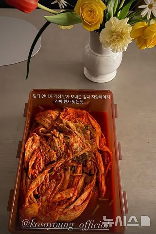 공개된 사진에는 고소영이 직접 담가 보내는 김치 모습이 담겼다.