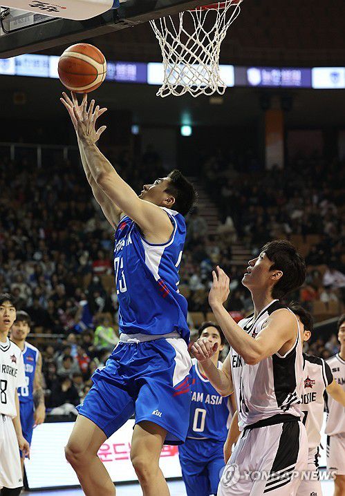 (서울=연합뉴스) 서명곤 기자 = 17일 서울 송파구 잠실실내체육관에서 열린 2025-2026 LG전자 프로농구 올스타전 전야제 팀루키와 팀아시아의 경기. 팀아시아 윌리엄 나바로가 슛을 하고 있다. 2026.1.17