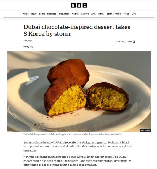 BBC는 14일(현지시간) ‘두바이 초콜릿에서 영감을 받은 디저트가 한국을 강타하고 있다’는 제목의 기사를 보도했다.