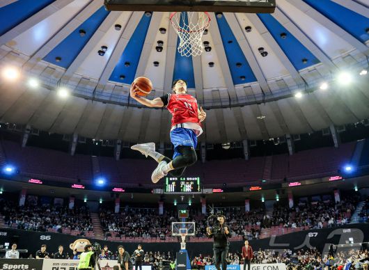 (서울=뉴스1) 김진환 기자 = 17일 오후 서울 송파구 잠실실내체육관에서 열린 2025-2026 LG전자 프로농구 올스타전 전야제 덩크 콘테스트에서 서울 삼성 조준희가 호쾌한 덩크슛을 하고 있다. 이번 올스타전은 지난 2015-2016시즌 이후 10년 만에 잠실실내체육관에서 열리는 경기이자, 해당 체육관 철거 전 마지막으로 열리는 올스타전이다. 2026.1.17/뉴스1