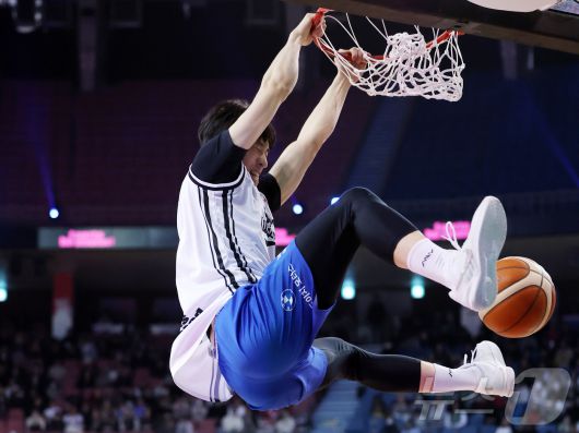 (서울=뉴스1) 김진환 기자 = 17일 오후 서울 송파구 잠실실내체육관에서 열린 2025-2026 LG전자 프로농구 올스타전 전야제 덩크 콘테스트에서 서울 삼성 조준희가 호쾌한 덩크슛을 하고 있다. 이번 올스타전은 지난 2015-2016시즌 이후 10년 만에 잠실실내체육관에서 열리는 경기이자, 해당 체육관 철거 전 마지막으로 열리는 올스타전이다. 2026.1.17/뉴스1