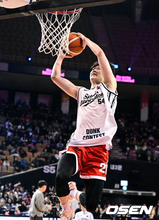SK 김명진이 전야제에서 진행된 덩크슛 콘테스트 예선전에서 멋진 덩크를 선보이고 있다. 2026.01.17 /cej@osen.co.kr