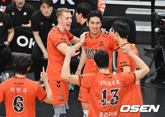 [OSEN=부산, 이석우 기자] 17일 부산 강서실내체육관에서 진에어 2025-2026 V리그 남자부 OK저축은행과 삼성화재의 경기가 열렸다.