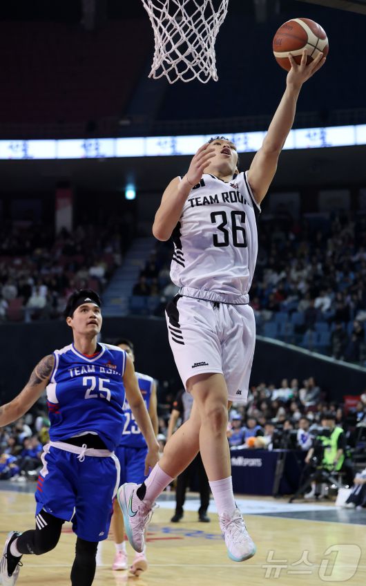 (서울=뉴스1) 김진환 기자 = 17일 오후 서울 송파구 잠실실내체육관에서 열린 2025-2026 LG전자 프로농구 올스타전 전야제 팀 아시아와 팀 루키의 경기, 팀 루키 에디 다니엘이 레이업 슛을 하고 있다. 이번 올스타전은 지난 2015-2016시즌 이후 10년 만에 잠실실내체육관에서 열리는 경기이자, 해당 체육관 철거 전 마지막으로 열리는 올스타전이다. 2026.1.17/뉴스1