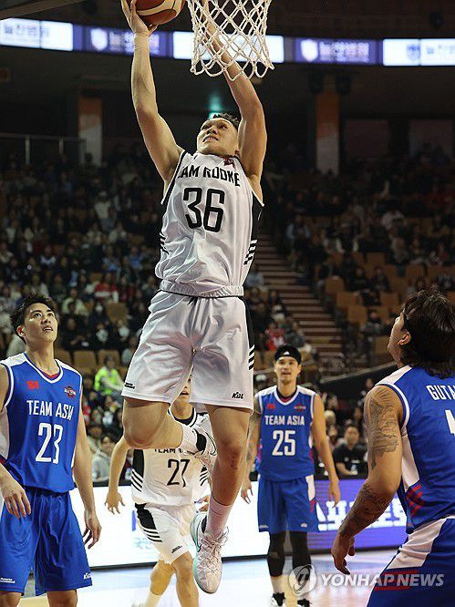 (서울=연합뉴스) 서명곤 기자 = 17일 서울 송파구 잠실실내체육관에서 열린 2025-2026 LG전자 프로농구 올스타전 전야제 팀루키와 팀아시아의 경기. 팀루키 에디 다니엘이 슛을 하고 있다. 2026.1.17