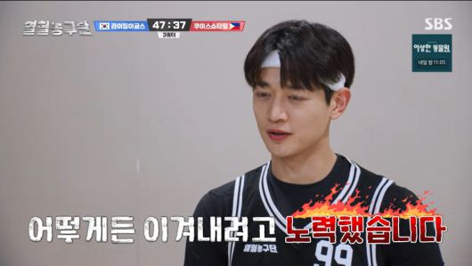 17일 오후 방송된 SBS 예능 프로그램 '열혈농구단'에서는 최민호가 상대방 선수의 강한 태클로 인해 넘어졌지만, 정신력으로 평정심을 유지하는 모습이 그려졌다.