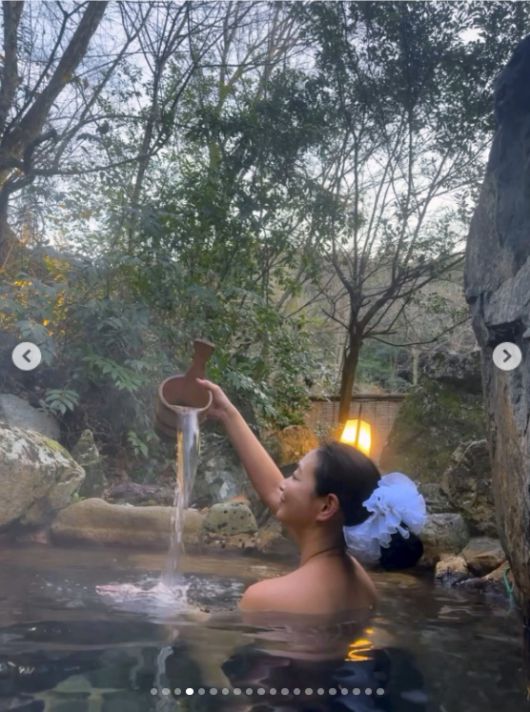 공개된 사진과 영상에서 진재영은 야외 온천탕에서 온천욕을 즐기고 있다. 물 밖으로 어깨를 드러낸 그는 밝게 웃으며 '힐링 타임'을 갖고 있는 모습이다.
