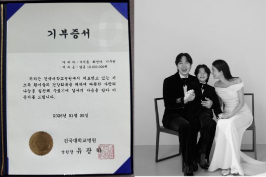이석훈은 17일 자신의 SNS(소셜미디어)를 통해 "2026년 1월 17일 결혼 10주년을 기념해서 지금껏 받은 사랑을 조금이나마 다시 돌려드리고 싶은 마음에 가족 이름으로 저소득 환아들을 위한 작은 기부를 했다"고 밝혔다. 공개된 기부증서에 따르면 이석훈은 본인과 아내, 아들 이름으로 건국대학교병원에 1000만원을 기부했다.