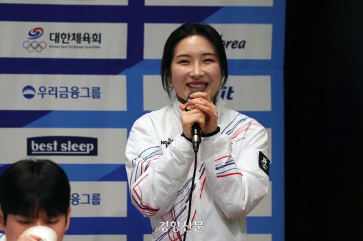 지난 7일 충북 진천국가대표선수촌 챔피언하우스에서 열린 2026 밀라노·코르티나담페초 동계올림픽대회 D-30 미디어데이에서 김길리 쇼트트랙 선수가 취재진 질문에 답하고 있다. 정효진 기자 |