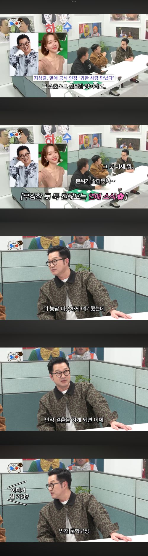 결혼식 장소에 대한 농담도 이어졌다. 지상렬은 “만약 결혼을 하게 된다면 인천에서 할 것”이라며 “인천 사람이니까 인천에서 상륙해야 한다”고 말했고, 농담 섞인 대화 속에서도 결혼을 가볍게 여기지 않는 태도를 보였다. 그는 “남의 결혼식을 그렇게 쉽게 얘기할 건 아니다. 평생 한 번일 수도 있는 일”이라며 진지한 속내를 드러냈다.