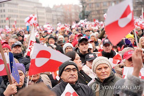 AFP·로이터통신에 따르면 이날 낮 12시 코펜하겐 시청 앞에서 열린 집회에 수천 명이 참가해 덴마크와 그린란드 국기를 흔들며 트럼프 대통령의 위협에 항의했다.