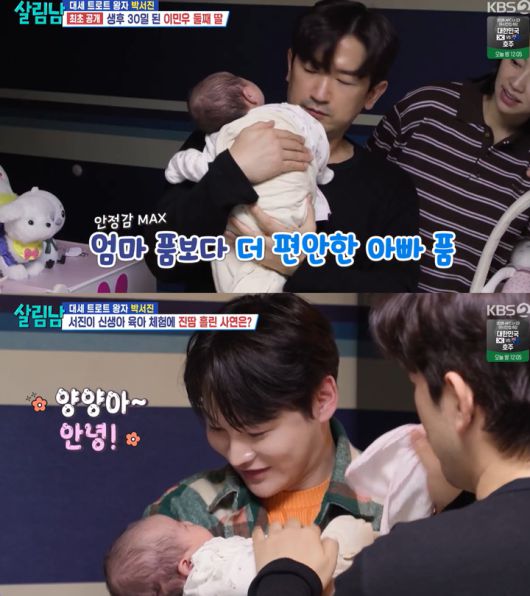17일 KBS2 '살림하는 남자들 시즌2'에서는 대세 트로트 왕자 박서진이 가수 이민우의 둘째 딸 양양이를 만나러 집에 방문한 모습이 그려졌다.