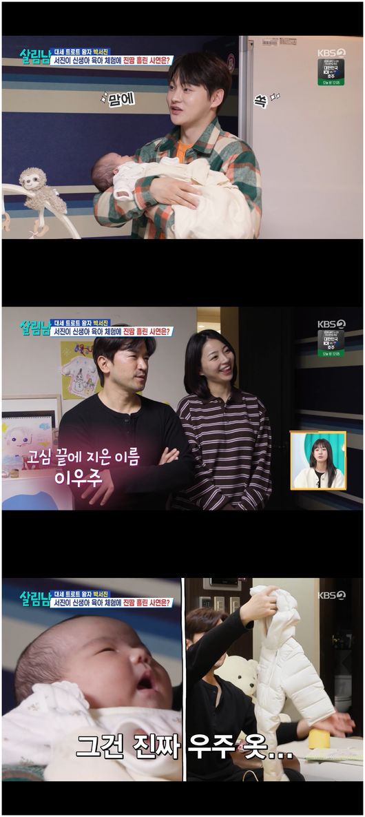 이어 박서진은 “아기 이름은 정해졌냐”라며 물어봤다. 이아미는 “우주로 정했다”라고 말했다. 박서진은 “내가 간 날 오후에 이름이 정해졌더라”라며 영광스러운 순간을 만끽했다는 듯 말했다./osen_jin0310@osen.co.kr