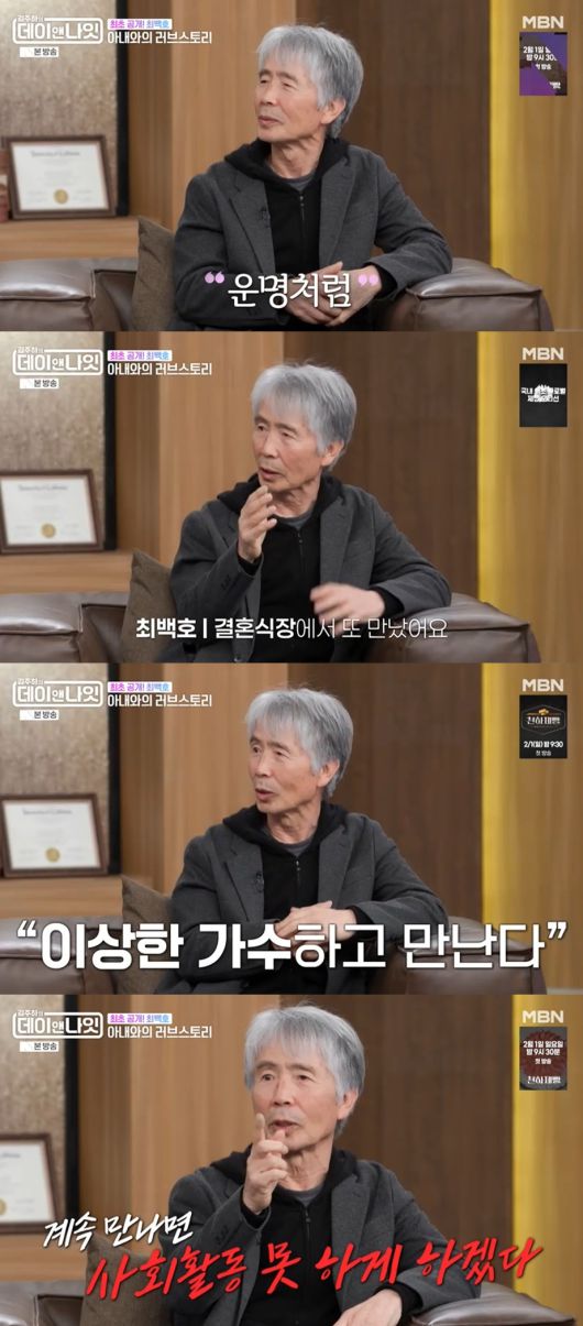 이날 최백호는 아내와의 첫 만남에 대해 "운명처럼"이라고 표현했다.