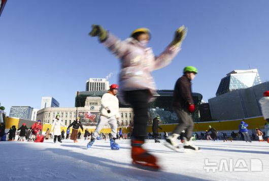[서울=뉴시스] 김근수 기자 = 수도권 지역에 강추위가 계속되는 11일 오전 서울시청 앞 광장에 마련된 스케이트장에서 시민들이 나들이를 즐기고 있다. 2026.01.11. ks@newsis.com |