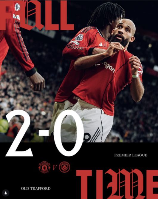 맨체스터 유나이티드는 17일 오후 9시 30분(한국시간) 영국 맨체스터에 위치한 올드 트래포드에서 열린 2025-26시즌 프리미어리그 22라운드에서 맨체스터 시티를 2-0으로 제압했다.