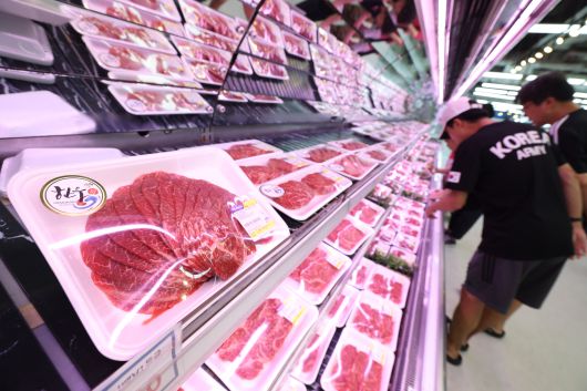 서울 도심의 한 마트에서 시민들이 한우를 살펴보고 있다. /뉴스1 |