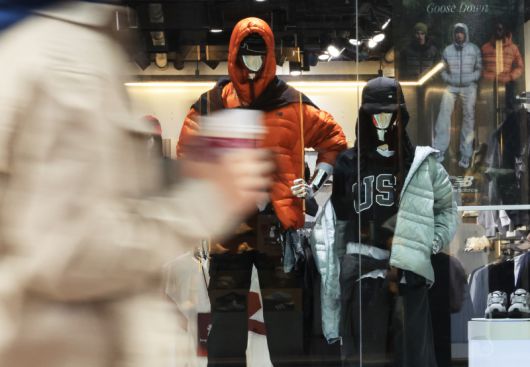 서울 명동 상점의 쇼윈도에 겨울 의류가 전시되어 있다. 연합뉴스 |