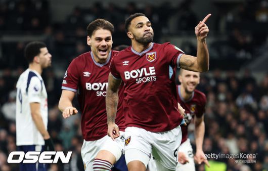 웨스트햄도 달아나지 못했다. 전반 25분 카스테나요스가 골문 바로 앞에서 결정적 헤더를 날렸고, 전반 36분 보웬의 추가골은 오프사이드로 인정되지 않았다. 5분 뒤 나온 마브로파노스의 헤더는 비카리오가 몸을 날려 쳐냈다. 전반은 토트넘 팬들의 야유 속에 웨스트햄이 1-0으로 앞선 채 끝났다.