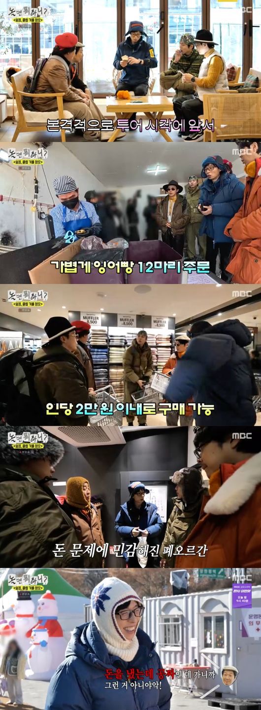 지난 17일 방송된 MBC 예능프로그램 ‘놀면 뭐하니?’에서는 유재석이 회장으로 있는 동호회 ‘쉼표, 클럽’의 겨울 나들이 현장이 전파를 탔다. 이날 유재석은 하하, 주우재, 허경환, 그리고 신입 회원 정준하와 함께 단돈 5만 원으로 쇼핑부터 액티비티까지 즐기는 알찬 코스를 기획했다.